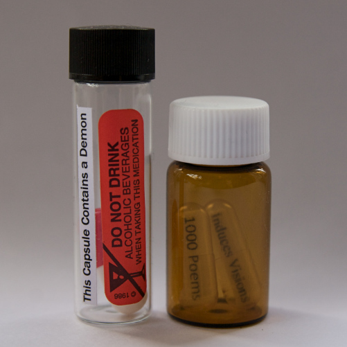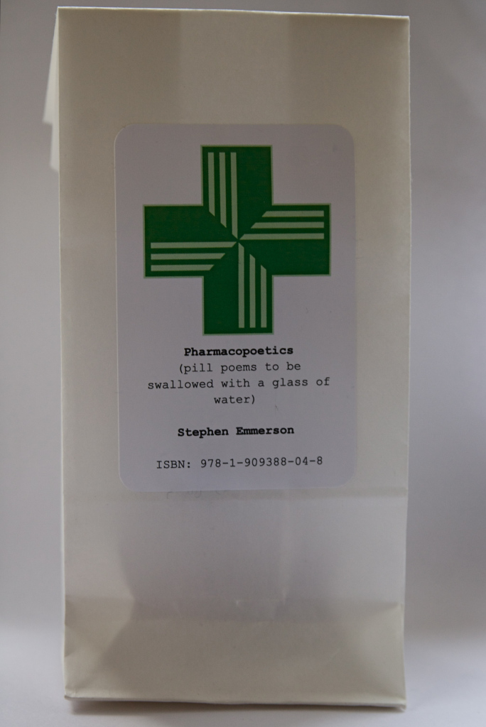 Pharmacopoetics 1 clear glass vial containing a red & white capsule. 1 amber glass vial containing 2 clear capsules. Stephen Emmerson. 2012. Share this: Click to share on X (Opens in new window) X Click to share on Facebook (Opens in new window) Facebook Like Loading...